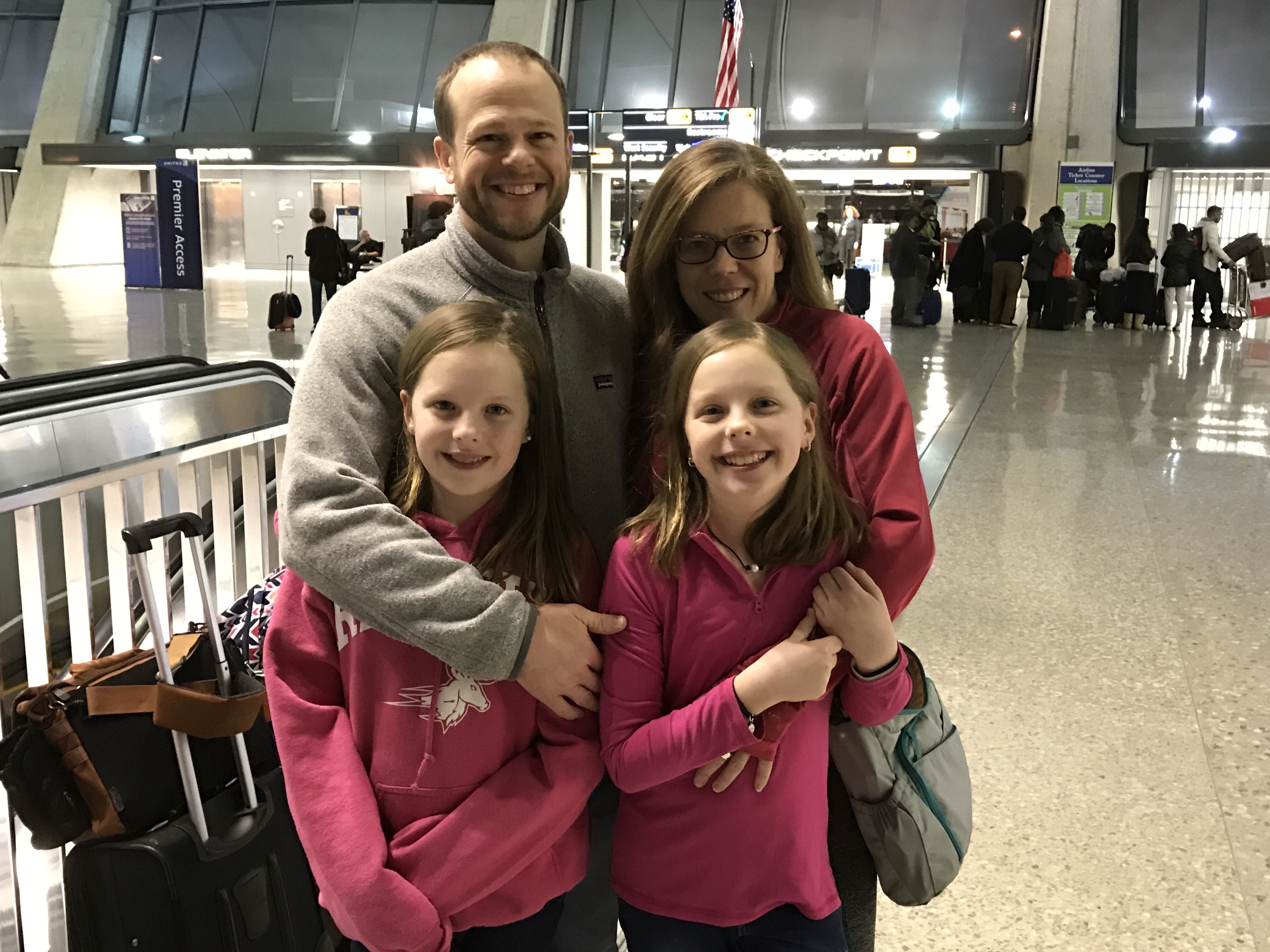 After a frantic day of packing and cleaning, we have somehow made it to the airport in time for our flight. It was a bittersweet day. We are all excited, but saying good buy to our friends and our dog Nessie was tough on the heartstrings. We can’t thank our superstar friends Kate and Molly Melito enough for taking us to Dulles International, more than 90 minutes from Baltimore.