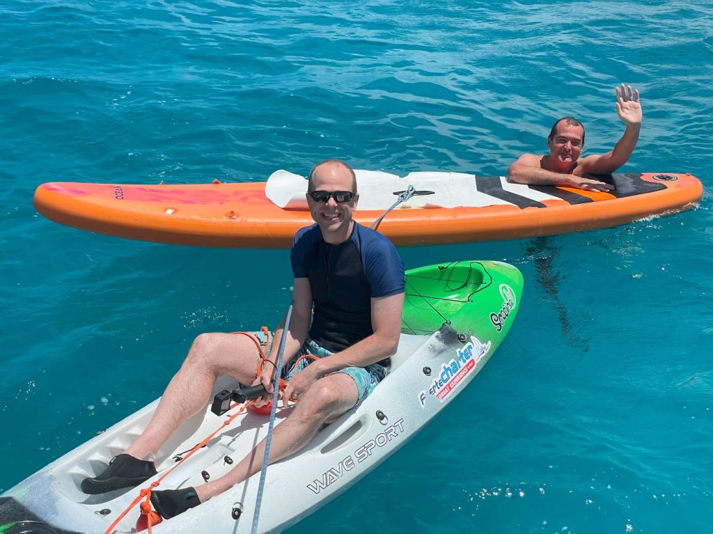 After we spent some quality time with the local fish, our captain and first made brought out some paddle boards and a kayak. The waves were a little choppy, making it a little hard to stand on the paddle boards, but that was part of the fun in a way.