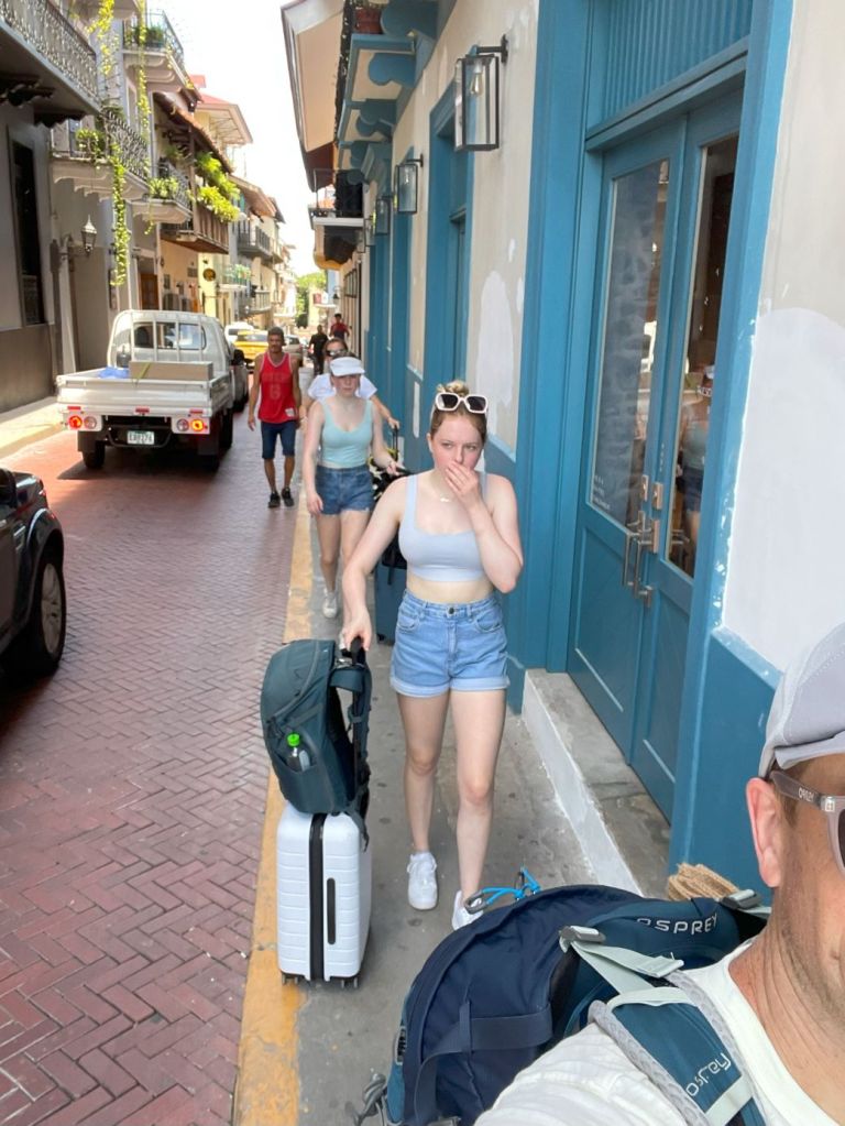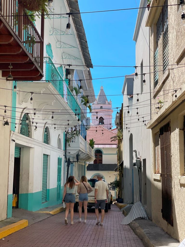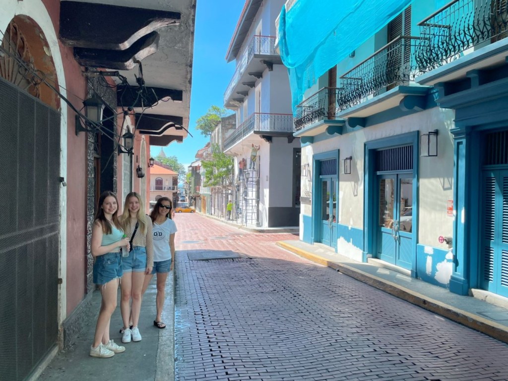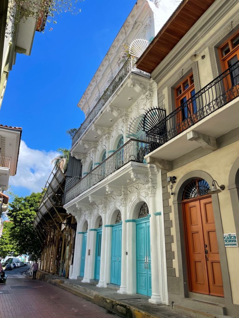 We woke up early on Day 2, in part due to the 1-hour time change and in part due our excitement about being in Panamá. Well, I should say that Julie and I woke up early. Our 18-year-old girls were moving a little slower. So, Julie and I decided to head out to some find some coffee. The day was bright and sunny, and we enjoyed strolling around, soaking up the old-city atmosphere.
