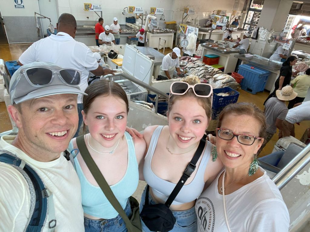 We packed together like sardines for a selfie, but the picture can’t capture the smells and sounds of the market.