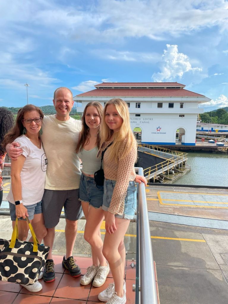 After lunch, we reached the Miraflores Locks, where there is a visitors center for observing the canal. We were excited to see that there was a boat transiting the locks when we arrived.