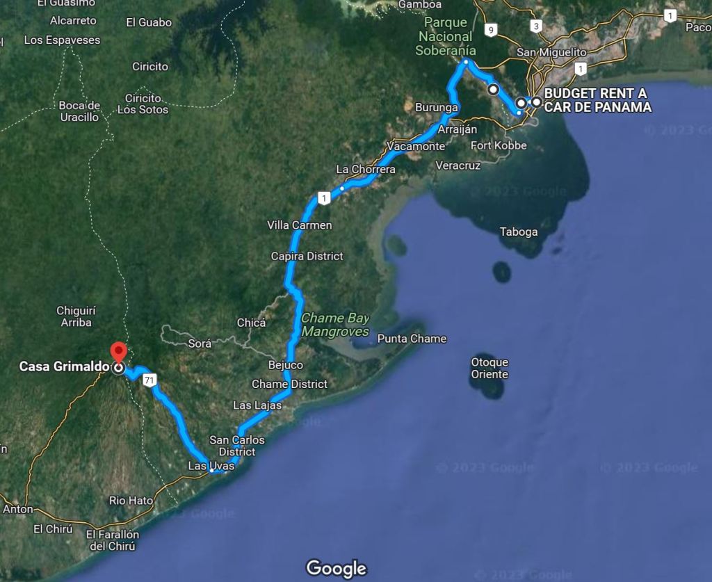 In the dark we climbed the twisty road. It had recently rained in the area, and we strained to distinguish puddles from potholes, deciding in the end to slow down and dodge anything dark on the road. We finally arrived and checked in to the Casa Grimalda, finding ourselves to be the only guests. The high season for travel in Panamá is in December, when the tourists are typically from Panamá and countries in South America. We dropped our luggage and headed out to find food in the small town, eventually eating outside at a tiny restaurant called Pa’Ya. Julie and I each enjoyed what would become our favorite Panamanian beer, Balboa, which was named for the Spanish conquistador Vasco Núñez de Balboa (who in 1513 was the first European to reach the Pacific Ocean by crossing the New World — which he did by crossing the isthmus of Panamá).