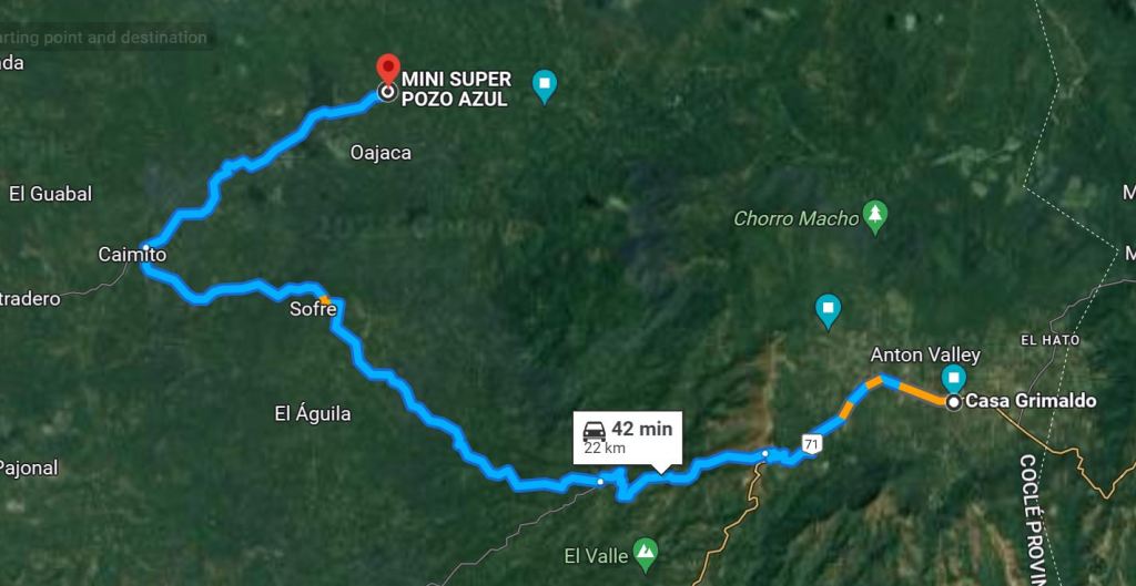 In any event, let’s get back to Day 3. Because of the lack of up-to-date guidebooks for Panamá, I had been researching our trip online, looking at blogs and videos on YouTube. A couple of these had mentioned Pozo Azul as a cool place to visit. In planning the trip, I had dropped a pin on Google Maps just in case, but I didn’t remember all of the details. I knew we would have to drive to where I dropped a pin and that we would have to find someone to take us the rest of the way in a 4×4. How to make that all happen was a little up in the air. And we didn’t know how things would be different in the off season. Nevertheless, we geared up, and headed out.