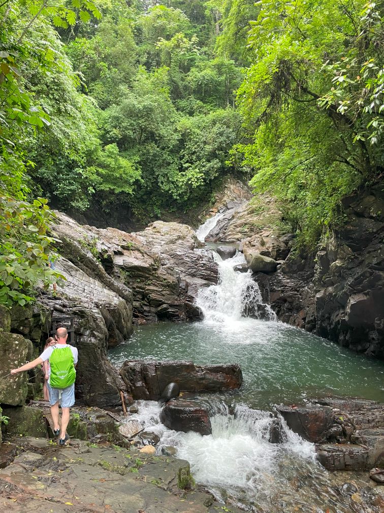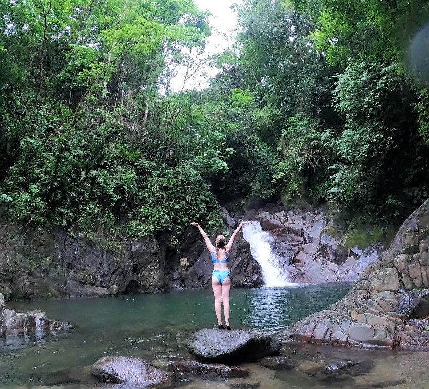 I went second, bracing myself for the cold shock of a mountain stream. But this is Panamá. The streams aren’t cold. They feel fantastic!