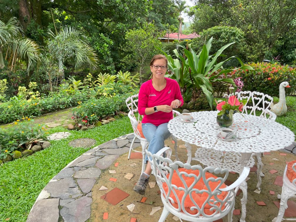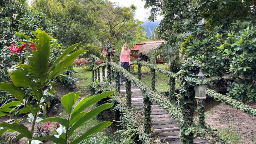 The door in the center of this photo was the room for Lydie and Cassie. The covered terrace is just to the left. Even better, Casa Grimaldo has a small but beautiful tropical garden. Once again, we felt lucky to be traveling in Panamá’s off season, as Julie and I had the garden entirely to ourselves while we enjoyed coffee surrounded by tropical plants.