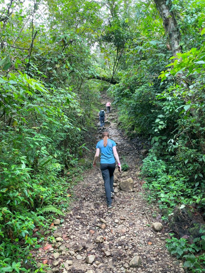 By this time, we were well away from the road, and we started seeing more wildlife, particularly tropical birds. We had been hearing birds throughout our hike, but they are hard to spot in the dense vegetation.
