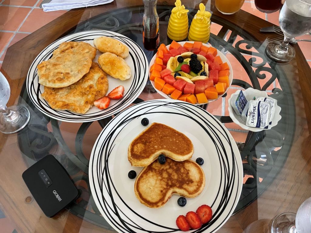 It started to rain/mist slightly, so we moved to the covered terrace next for breakfast.