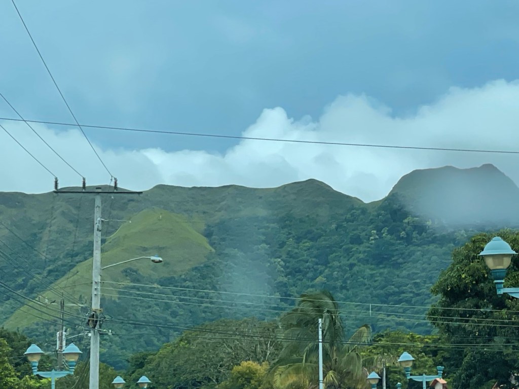 We had incredible fresh fruit – literally the best bananas we’ve ever tasted. And hojaldras! After breakfast, we geared up for our first activity of the day, which was to take a hike. Indeed, one of the reasons we came to El Valle is that it is known for its hiking. But Anton Valley is not your typical valley. Rather, it is a caldera from an ancient volcano with a tiny village nestled inside. Long ago, the caldera filled with water, and that water eventually wore passes through parts of the caldera walls. Much of the caldera remains, so that today you can hike parts of the ancient rim.