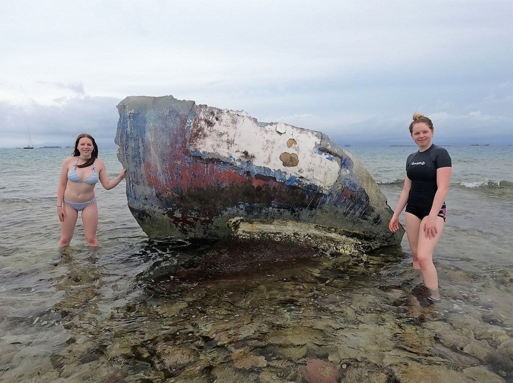 They returned and told me all about it, piquing my curiosity, so I headed back with them in a kayak. The girls showed me a ship’s rudder, apparently used locally as a navigational marker to identify the shallow water.