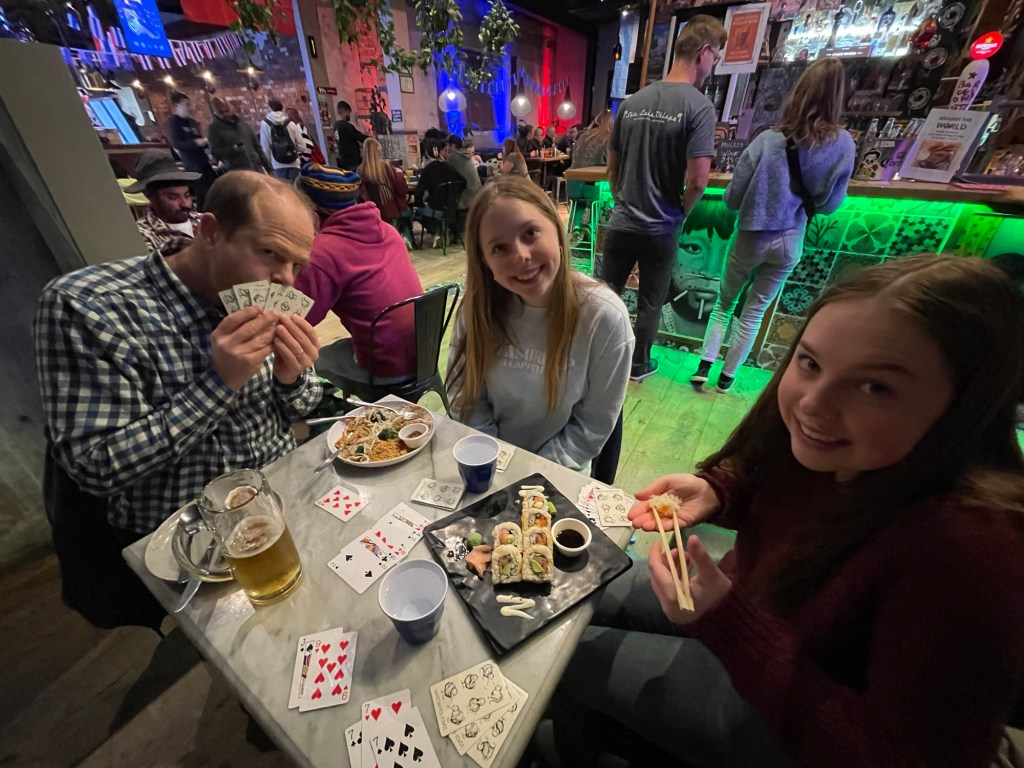 For dinner we found another local food hall, where we played cards as we waited for our food.