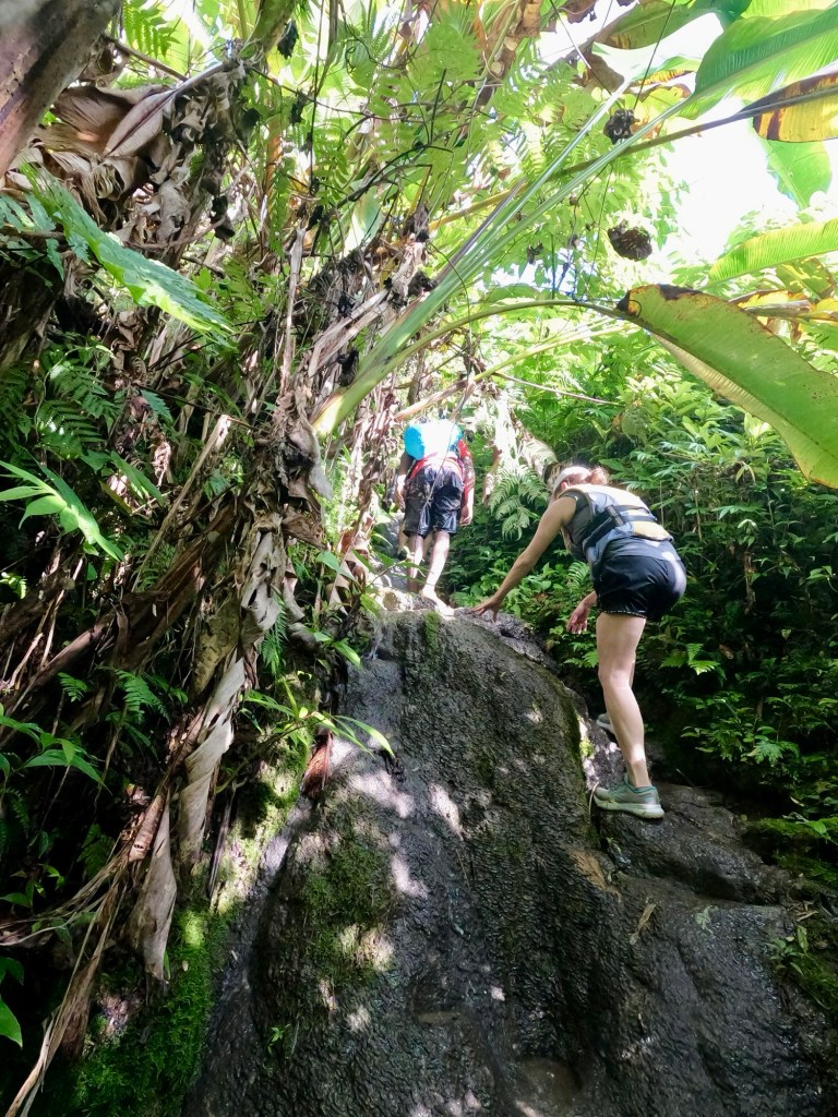 Ropes also gave us something to grab from time to time. We climbed up, we climbed over, and we climbed down, always following the river. It was exhilarating.
