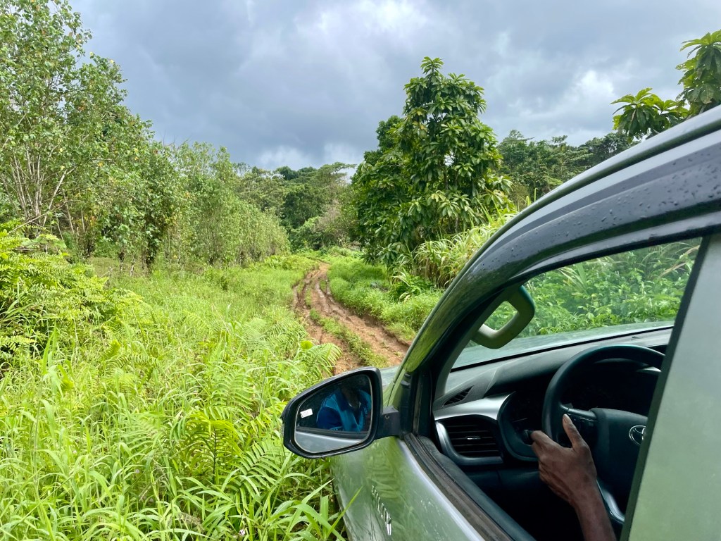After our briefing, we paid our fares and climbed back in Michele’s truck. A short time later we turned onto a dirt road ascending into the jungled interior of the island. The road was far rougher than anything we’d seen so far, with muddy ruts worn by 4x4s so deep that the undercarriage scraped as we drove.