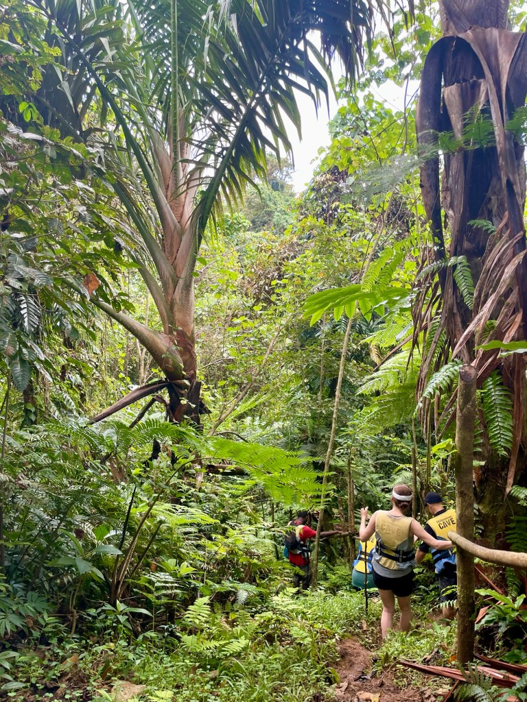 In Funaspef we were given life vests, which we would wear as we hiked for the next couple of hours to the cave. Geared up, we set off into the jungle, with the trail becoming markedly smaller.