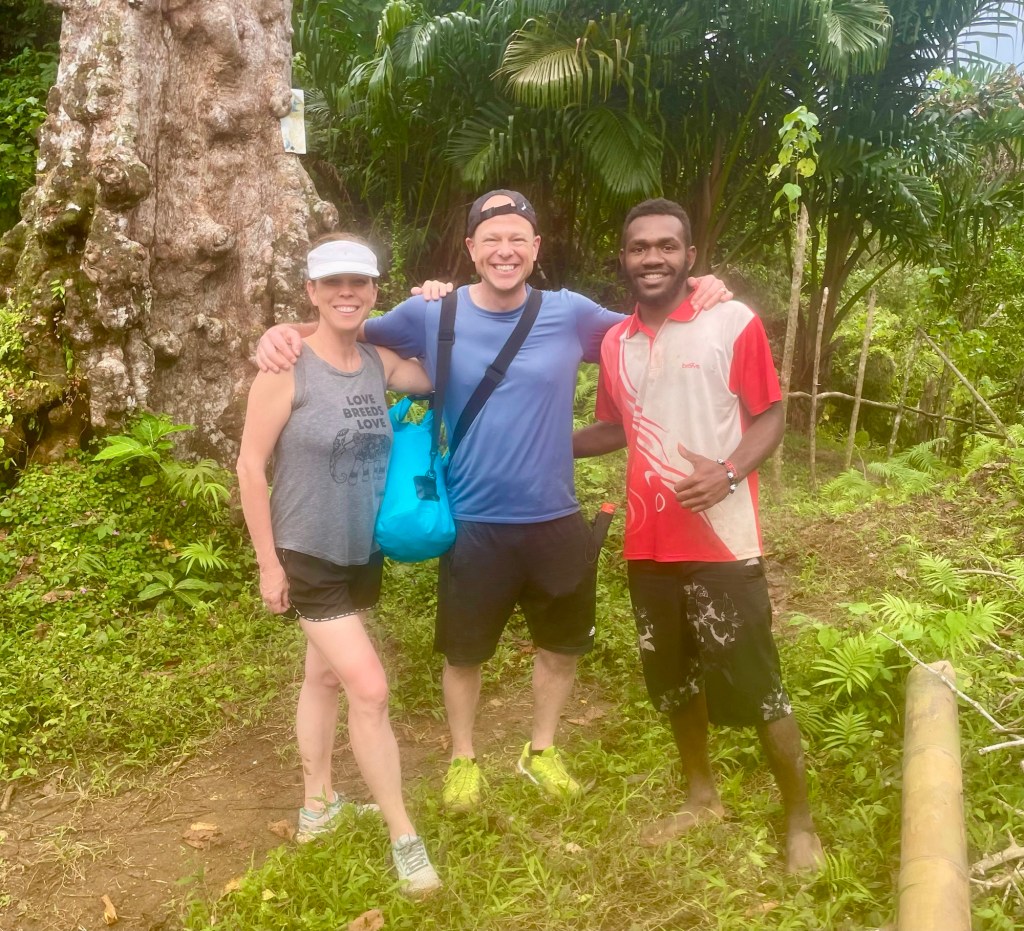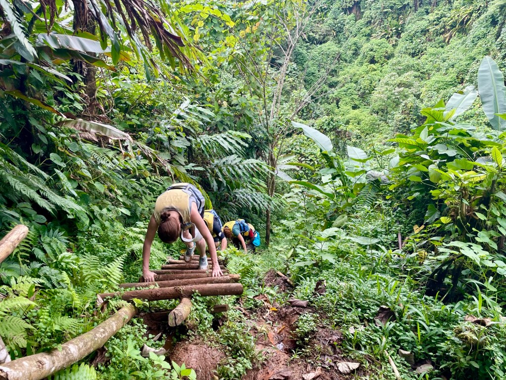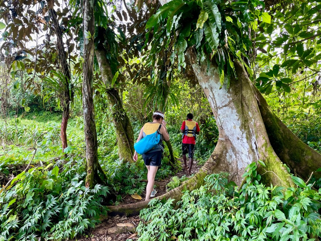 Along the trail our guides also highlighted other interesting plants, including the vines used on Pentecost for their vine-diving tradition. After our break, the trail grew much steeper.