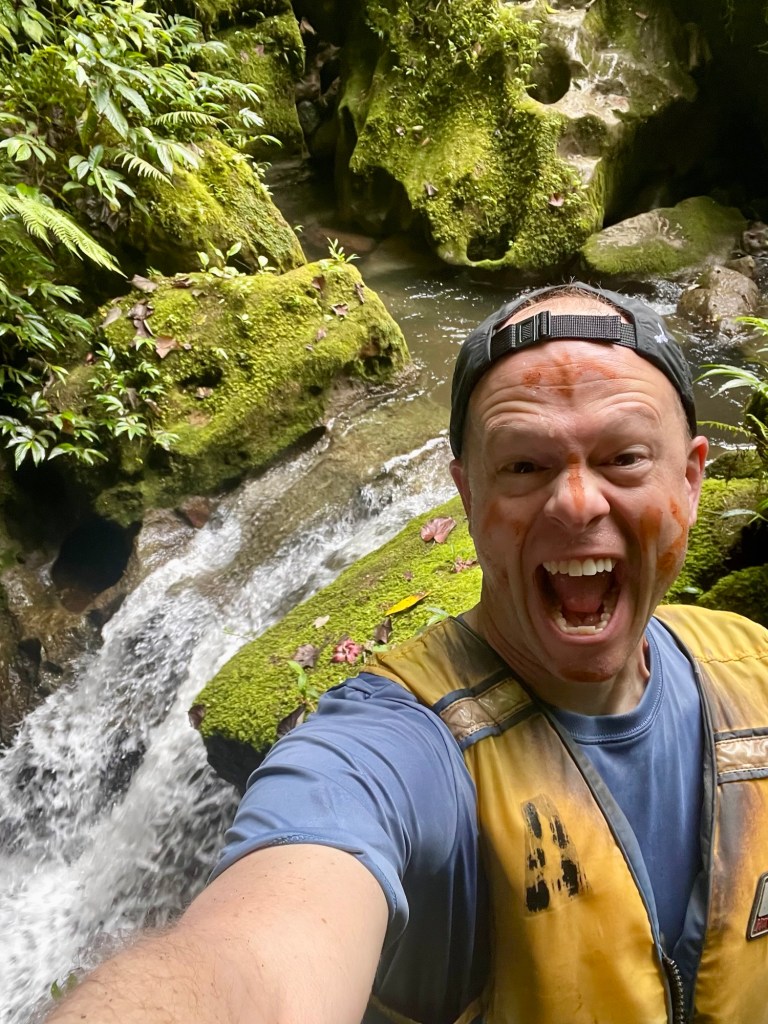 After about an hour, our guides stopped us for another break and some face painting. The guides used the wet mud we’d been hiking through to draw various cave-related motifs on our faces.