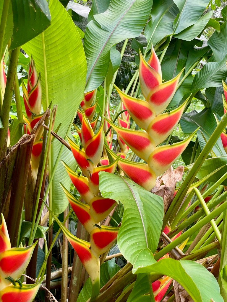 Around the church, there were blooming heliconia, though we couldn’t tell if they’d been planted or simply grown there naturally.