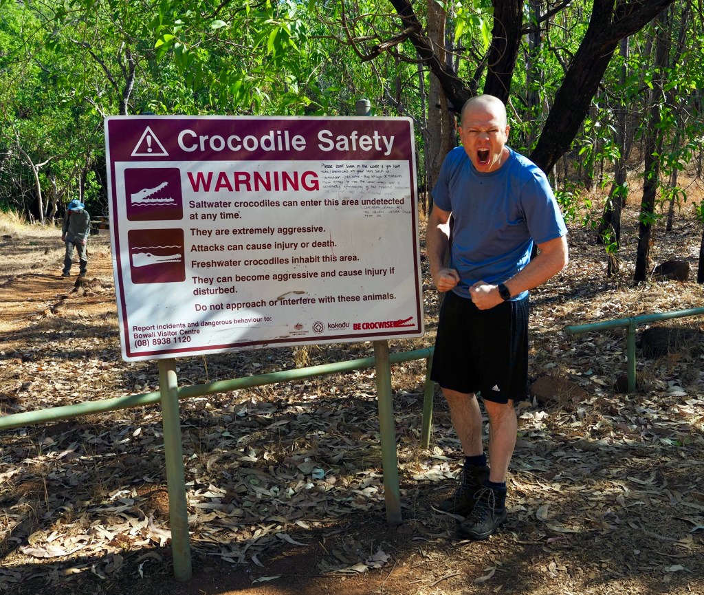 After our short swim, we headed back to the truck, passing by a sign warning swimmers that there might be crocodiles in the area. Guess who didn’t get bitten by a croc? This guy!