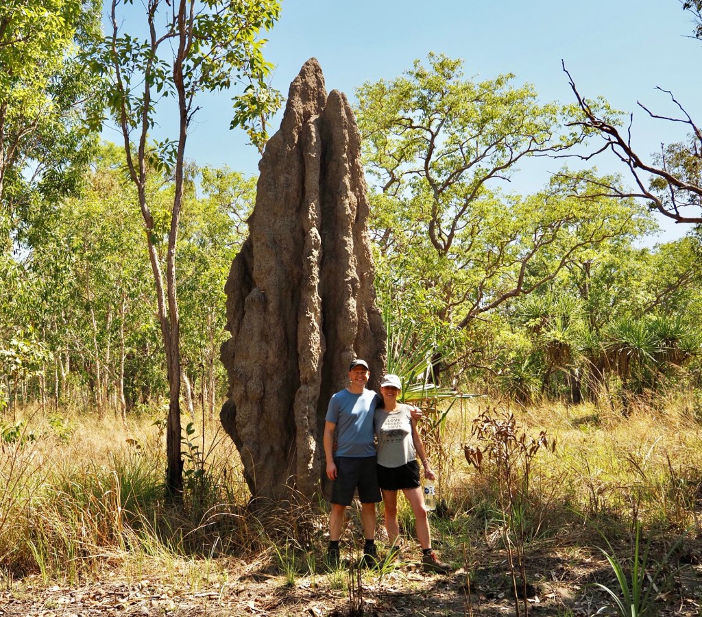 After the swim, we climbed back in the truck. As we rode, Glenn told us about the aboriginal people, including their fire management tactics and their use of calendar plants, that is, plants that indicate the times to hunt certain animals or set fires in certain areas. We soon reached our next stop, a shady spot along a dirt road where we had some tea and scones. While we snacked, we checked out some of the massive termite mounds in the area.