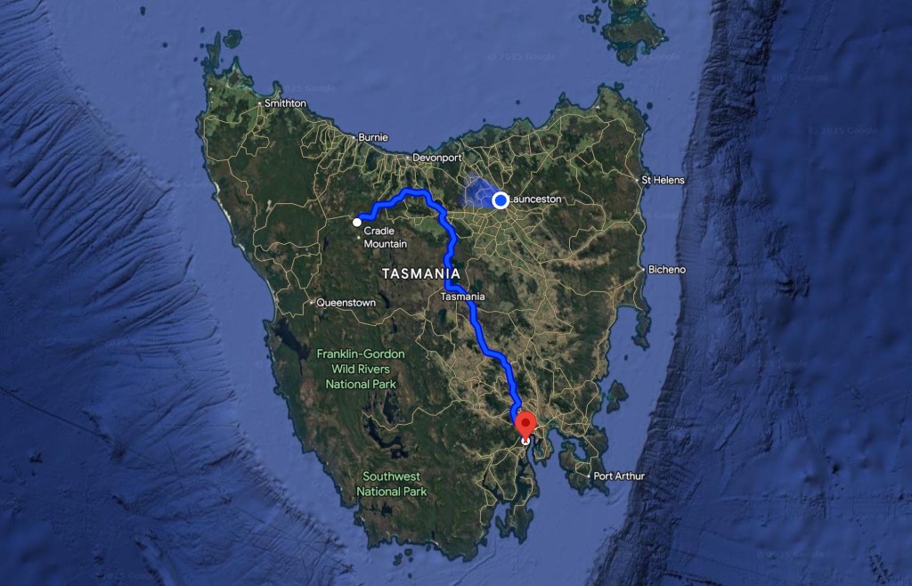 On November 12, we drove almost entirely across Tasmania, relocating from Hobart to Cradle Mountain. Fortunately, Tasmania is small, so the drive only took us about 5 hours.