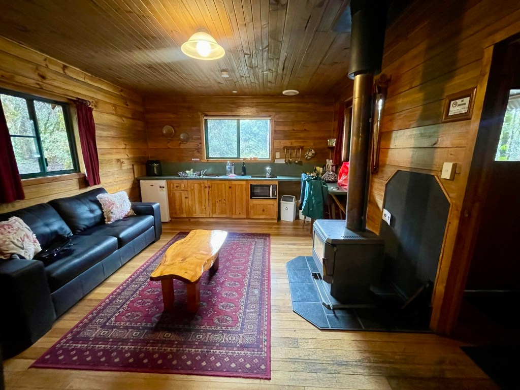 We drove through a high inland plateau before reaching farmland on the northern coastal plain. As we approached the Cradle Mountain National Park, the terrain grew more mountainous. Around 4, we reached the cabin where we’d be staying for the next couple of nights. The temperature was dropping outside, and we were excited to find that the wood-burning stove was already going, making the cabin even cozier.