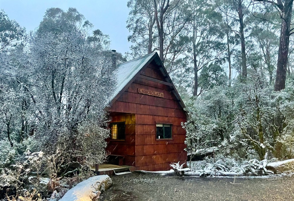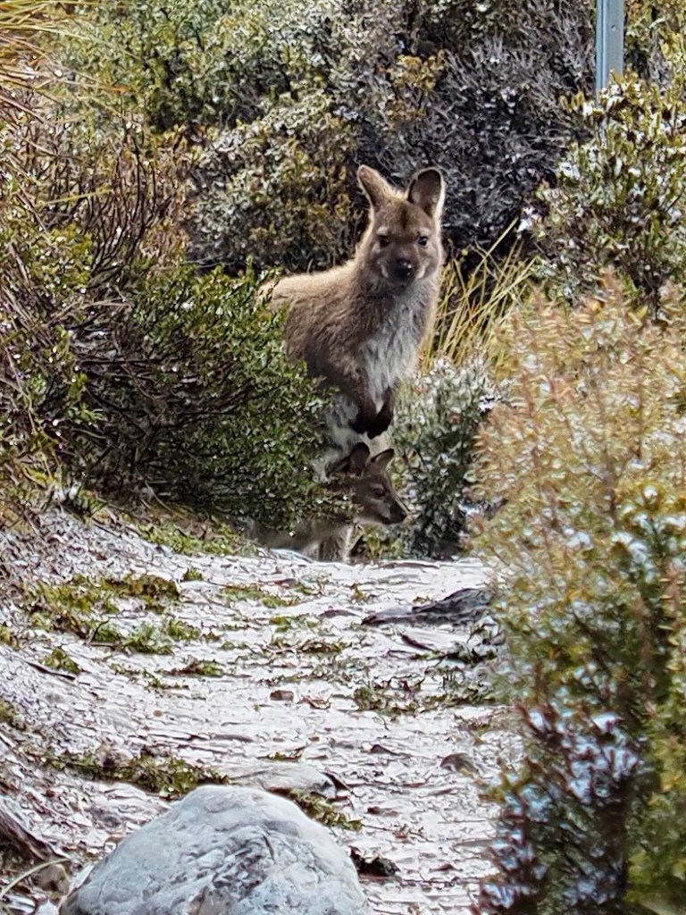 As we hiked, it started to snow again. Ah, springtime in Tasmania!